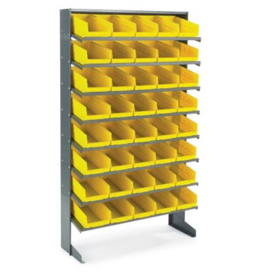 QUANTUM Pick Racks feature angled shelves to place bin upon for improved bin support and access. Steel racks come complete with removable polypropylene shelf bins. Appropriate for lean manufacturing. Read More..
