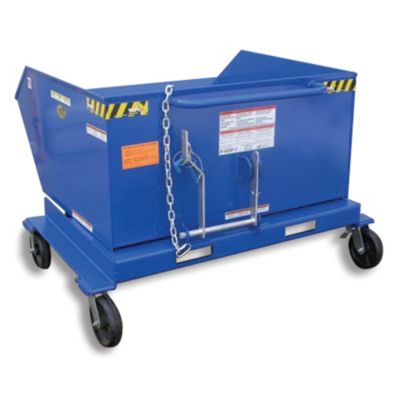 Enable operator to easily dump load while remaining seated on forklift. VESTIL Mobile Steel Hoppers feature robotically welded seams for superior durability. Pull cable unlocks hinge, dumping the load. 12-gauge steel. Also include: built-in fork pockets, safety chain to attach to fork truck, and 8" phenolic casters2 rigid, 2 swivel (one with brake). 2000-lb. capacity. Powder coat finish. Color: blue. Read More..