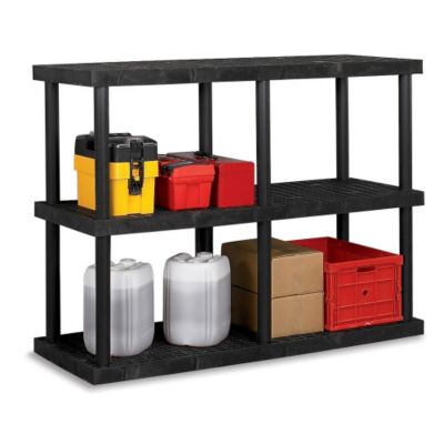 Tough STRUCTURAL PLASTICS Dura-Shelf All-Plastic Industrial Shelving with Fixed Shelves stores practically anything including chemicals and corrosives. Sets up quickly without tools. Start with 2-shelf base unit and attach 1-shelf add-on units to reach desired height. 24"H posts snap in place via a locking collar system. Fixed polyethylene open grid shelves promote air circulation, prevent dust buildup and allow liquids to flow through. Read More..
