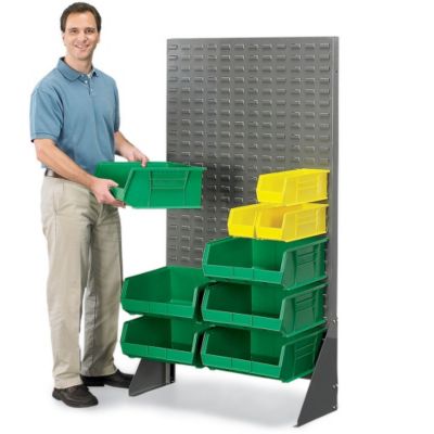 Helps provide a complete solution for small-to-medium sized parts storage and retrieval. Louvers securely support AkroBins. AKRO-MILS Louvered Panel Floor Racks are forged from 16-gauge cold-rolled steel and supported by horizontal ribs. Bins hang on one side. Durable gray powder coat finish. Appropriate for lean manufacturing. NOTE: Bins sold separately. Read More..